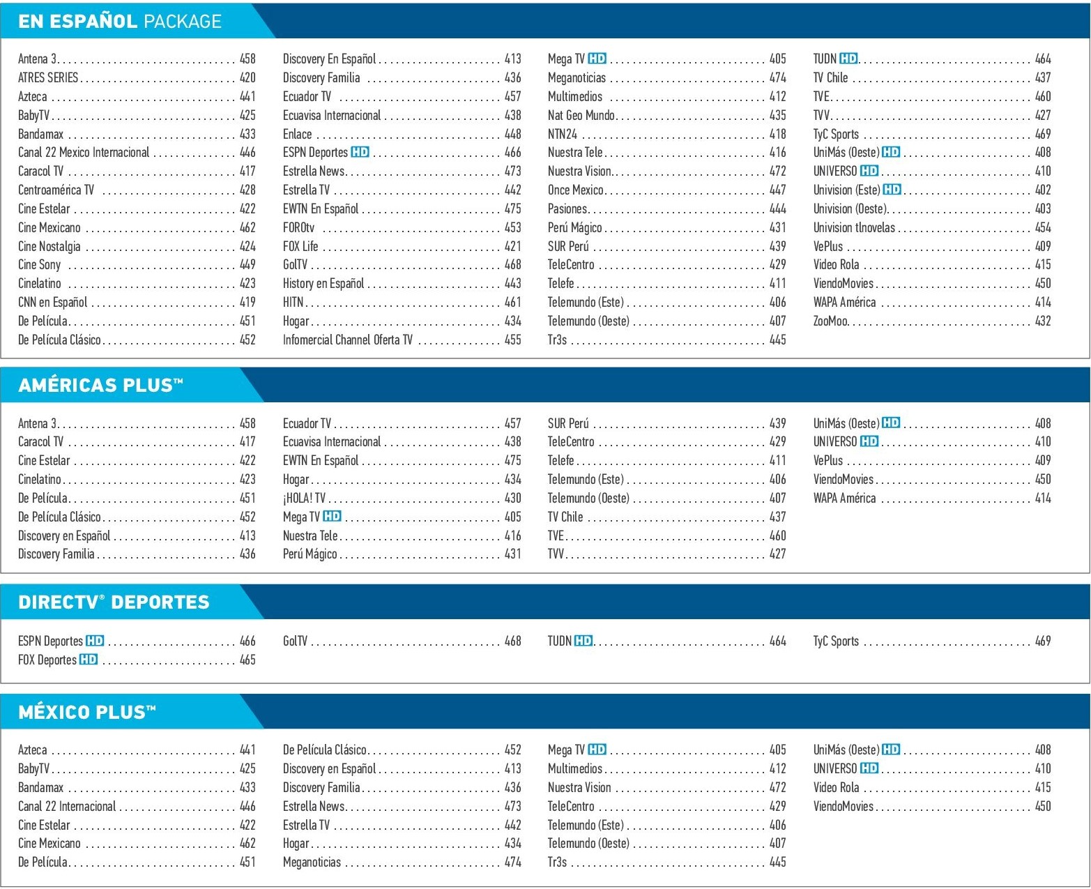 1-This channel requires HD equipment and Advanced Receiver-HD. Please call us for more information. 2-This channel requires a DIRECTV Multi-Satellite System. Please call us for more information. 3-Professional and collegiate sports subscriptions sold separately. Blackout restrictions and other conditions apply.
